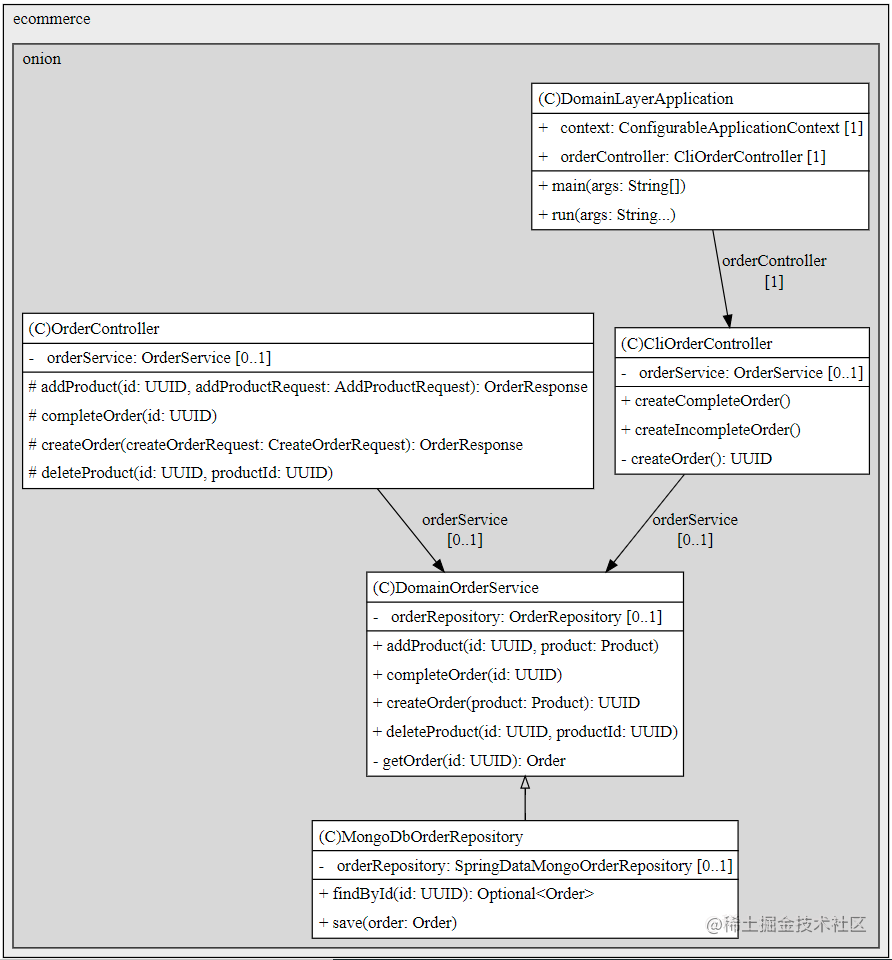 如果我们在Order域对象中添加特定于技术的注释,则将违反基础结构层和领域层之间的解耦关系。